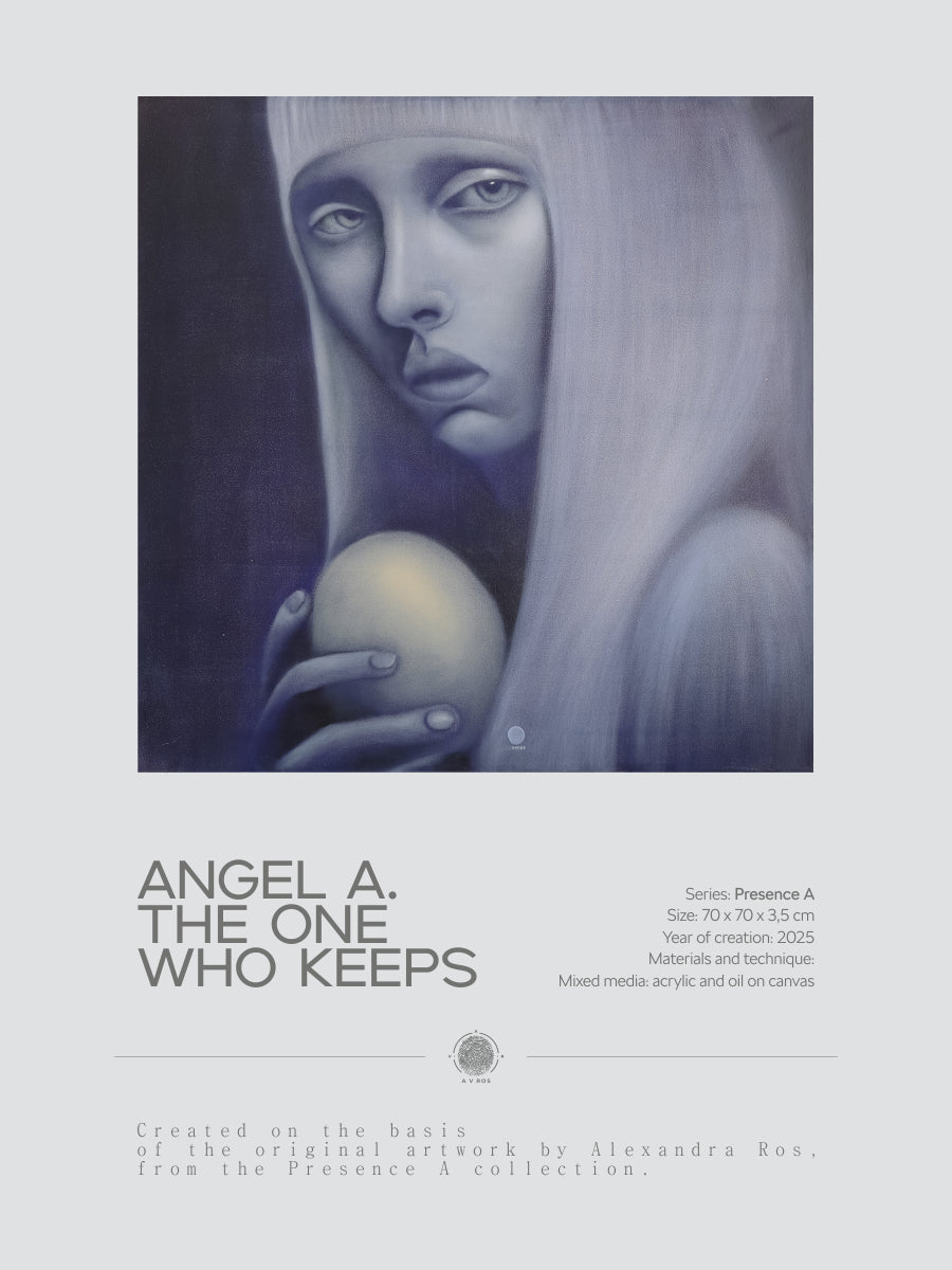 Fine-art reproduction inspired by the original artwork “Angel A. The One Who Keeps” from the Presence A series by artist Alexandra Ros.